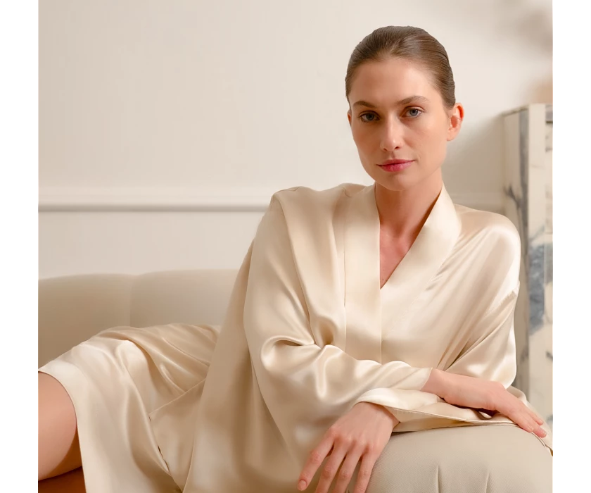 उत्पाद 100% प्राकृतिक Mulberry 6A शेल्क से बने हैं, जिनकी घनत्व 19 मोमी है। कपड़ा Oeko-Tex® अंतर्राष्ट्रीय मानकों के अनुसार प्रमाणित है, जो इसकी पुष्टि करता है कि इसमें कोई रासायनिक जोड़, हानिकारक पदार्थ और जहरीले रंग नहीं हैं