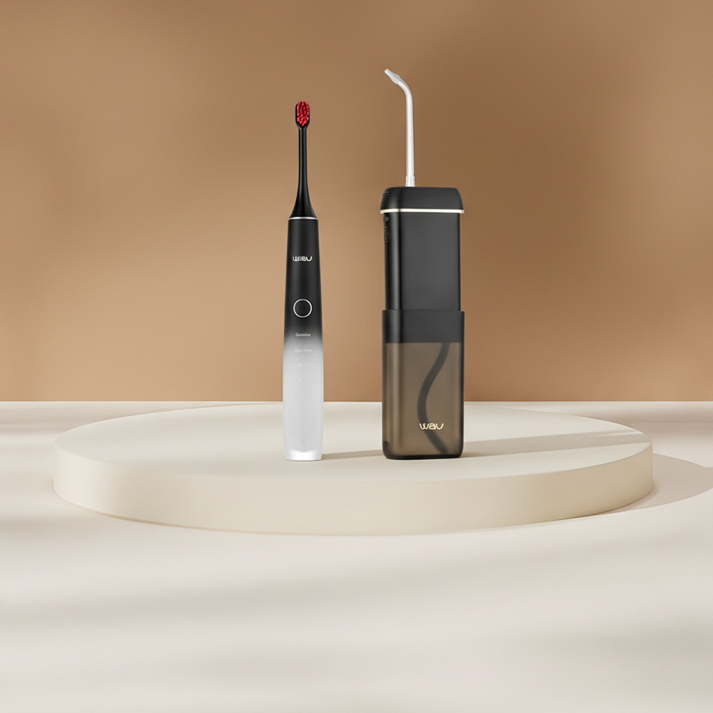 A complete dental care duo. The MORI BLACK sonic toothbrush removes plaque and bacteria, while the portable MIGA BLACK irrigator complements your routine by cleaning hard-to-reach areas and massaging gums.